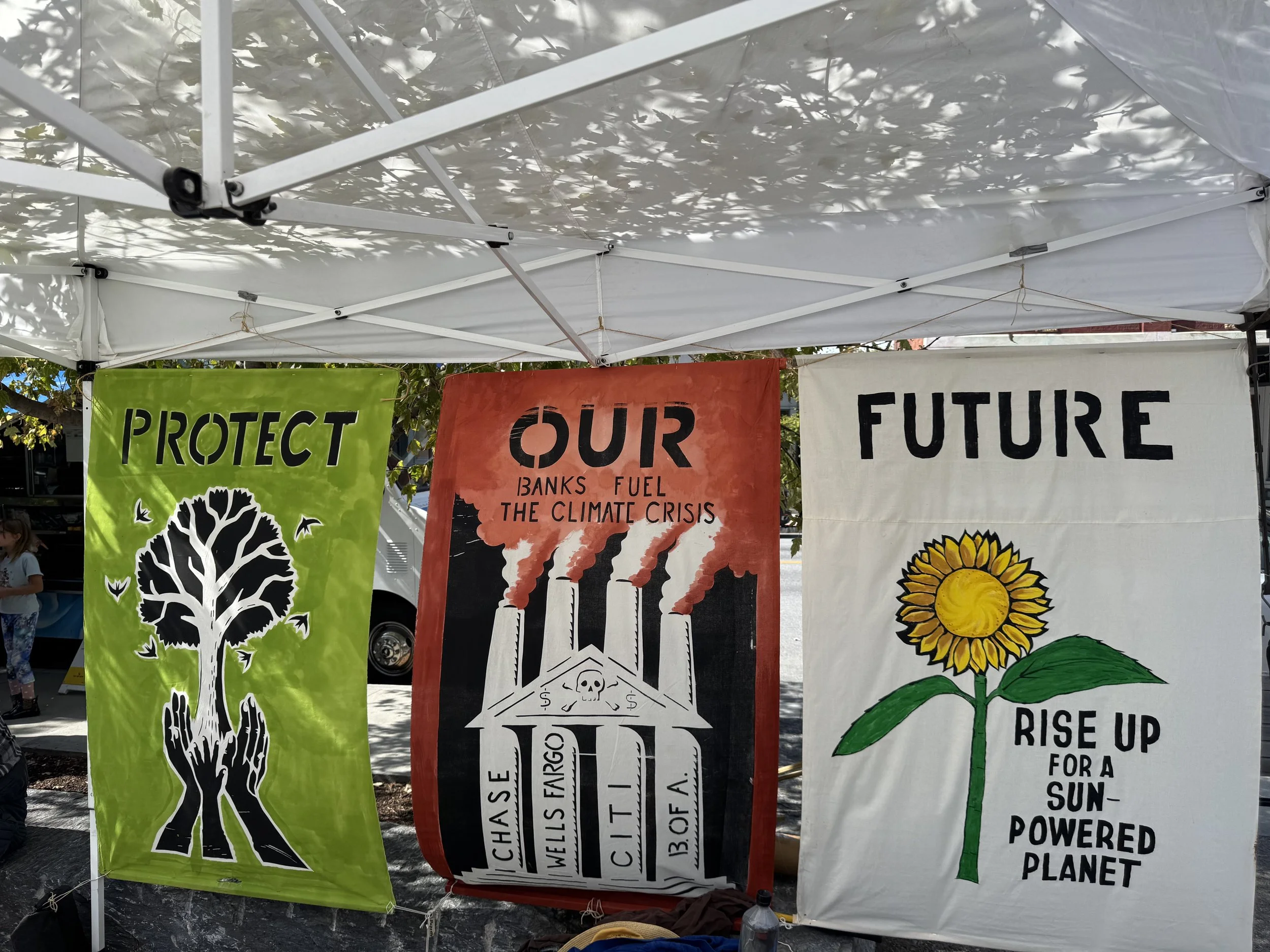 Banners at Sun Day in Middlbury, Vermont, September 21, 2025