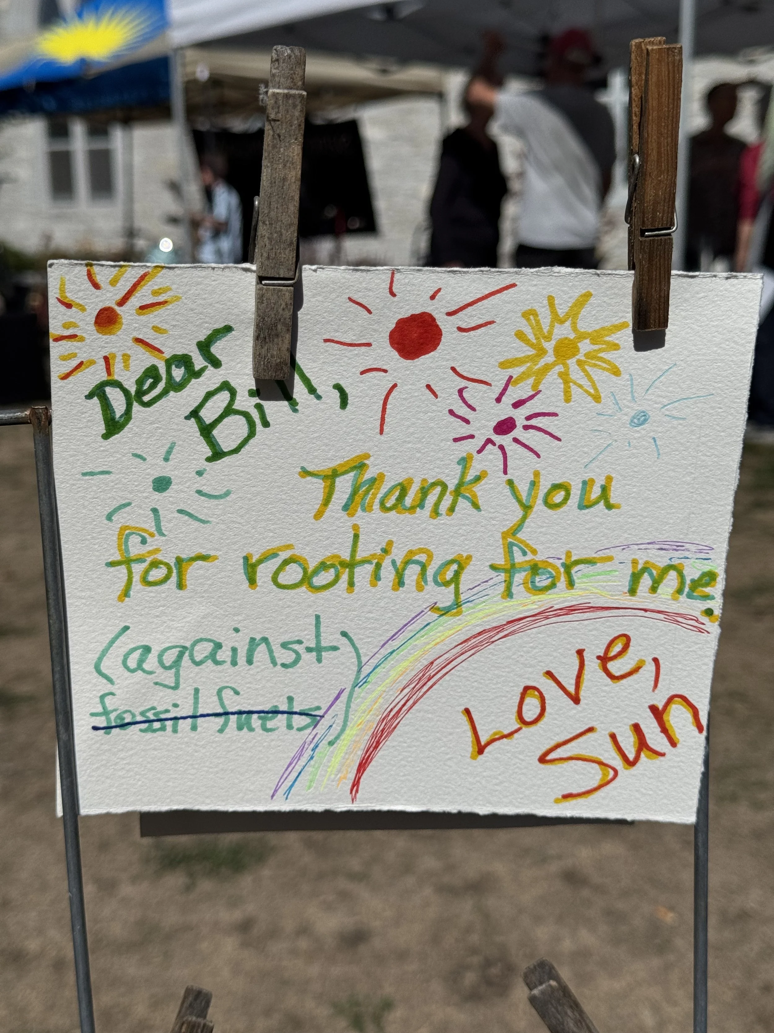 Thank you Notes to Bill McKibben at Sun Day in Middlebury